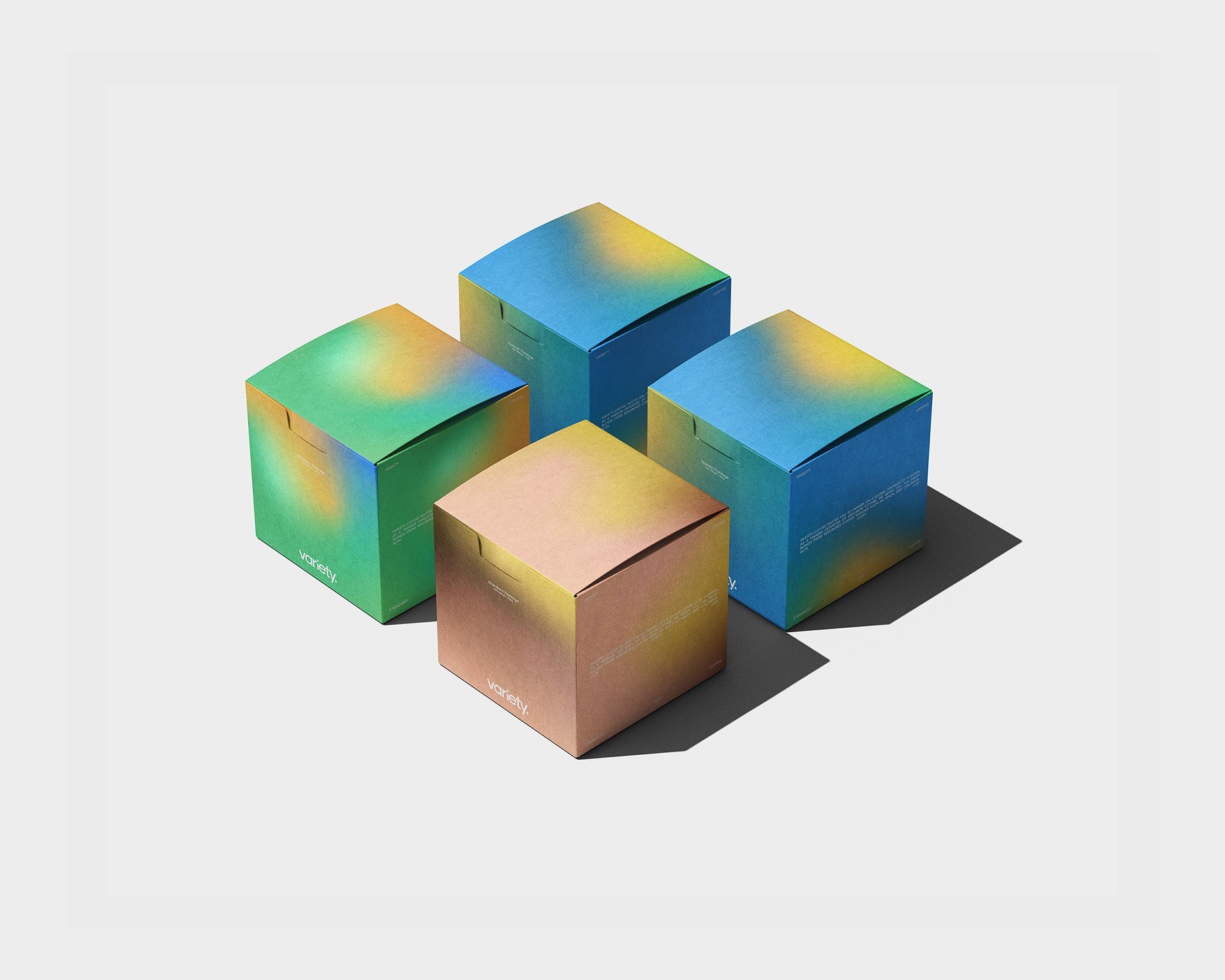 The solution was to uses distinct colors for each coffee type and make a unique combination of gradients for each category with clean typography and modern design. This approach reflects the brand's premium nature and highlights the variety of flavors, inviting customers to "Taste the World."